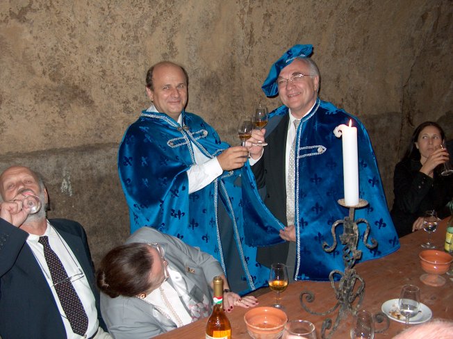 Az előadást vacsora követte a hangulatos Mátyás Étteremben, majd borkóstolót és bemutatót tartottunk Ráski László a Tállyai Ráski pincészet tulajdonosa és Gáspárfalvi József klubtagunk (mindketten az István Nádor Borlovagrend tagjai) közreműködésével a Palota Szálló egyedülálló pincéjében a Ráski pincészet csodálatos boraiból.