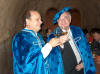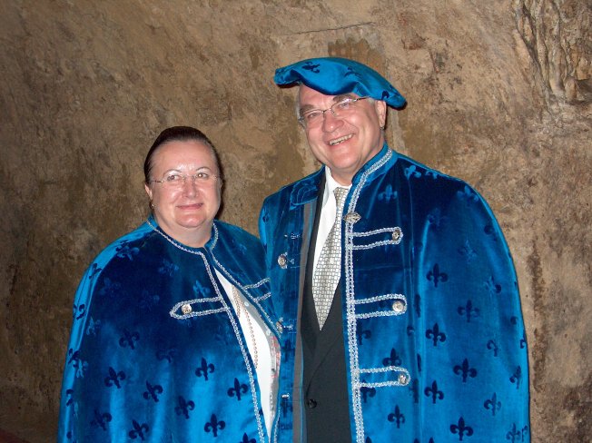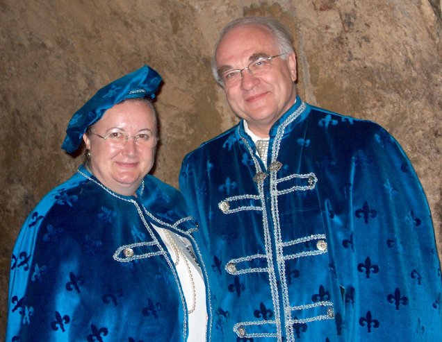 A professzor úr és felesége felpróbálhatta pár fénykép erejéig a borlovagrend ornátusát.